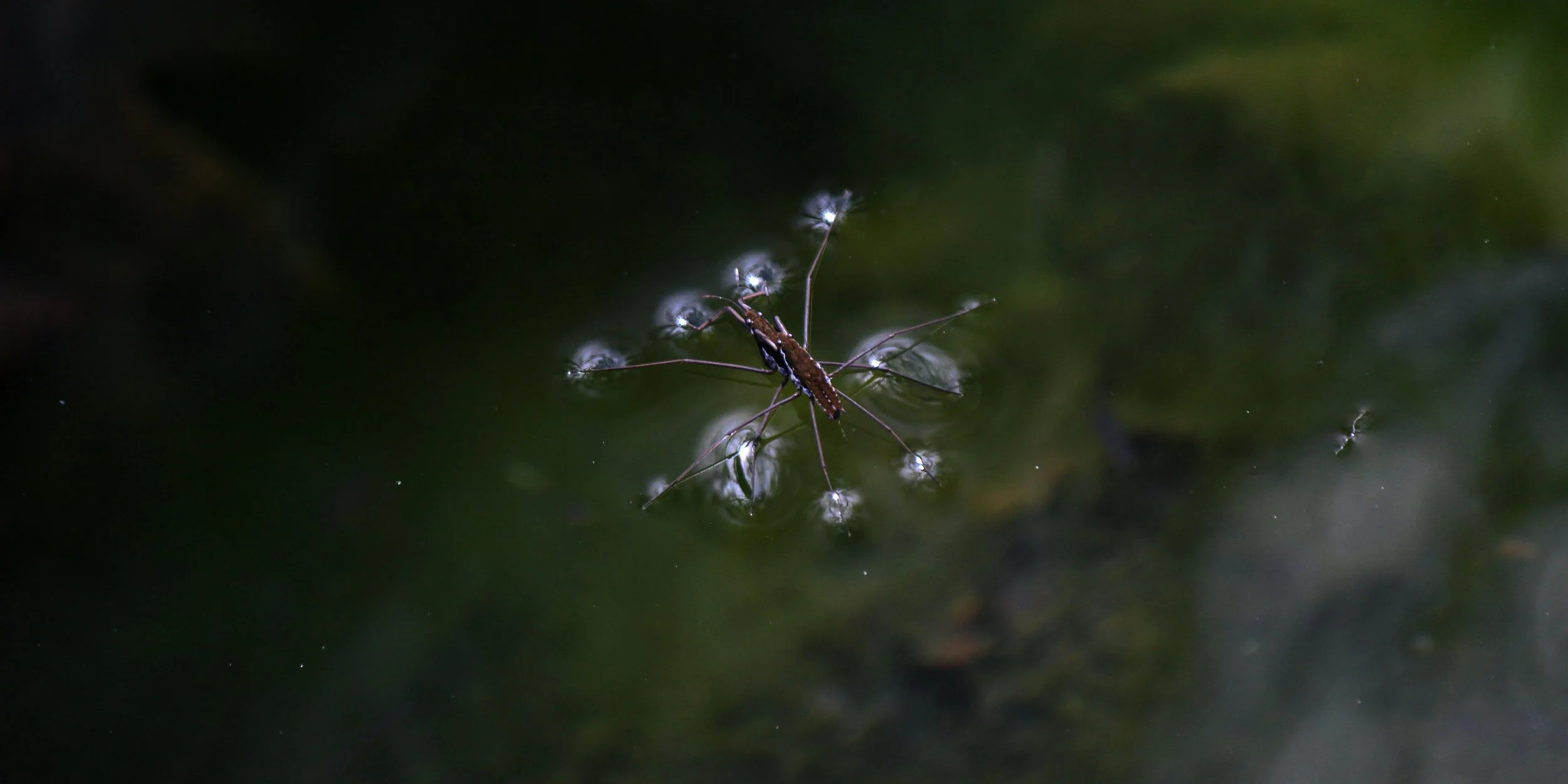 4. Water Striders These fascinating insects skate across the surface of the water, thanks to their long legs and water-repellent feet. Water striders are great for teaching kids about surface tension and the unique adaptations of aquatic insects.