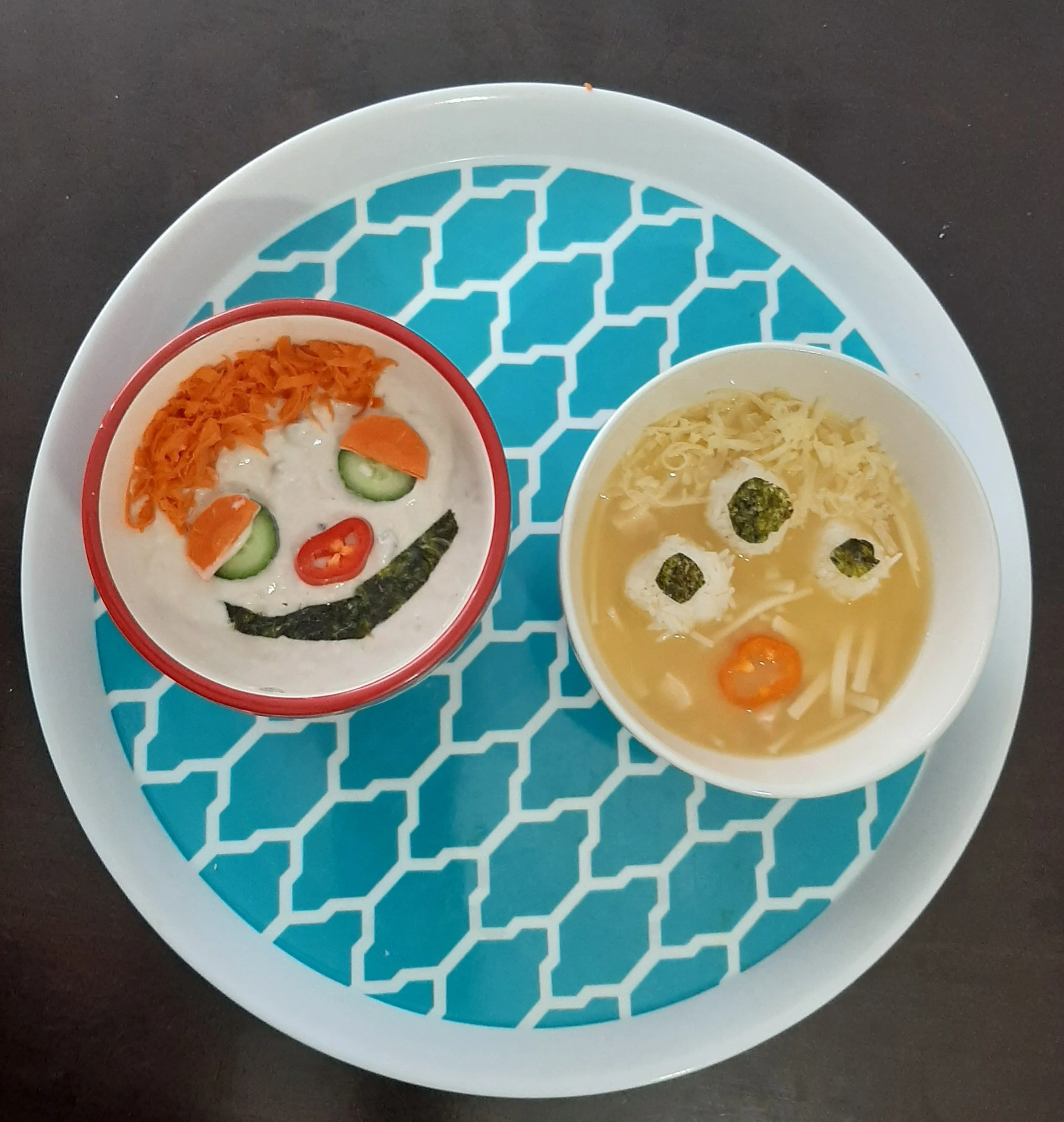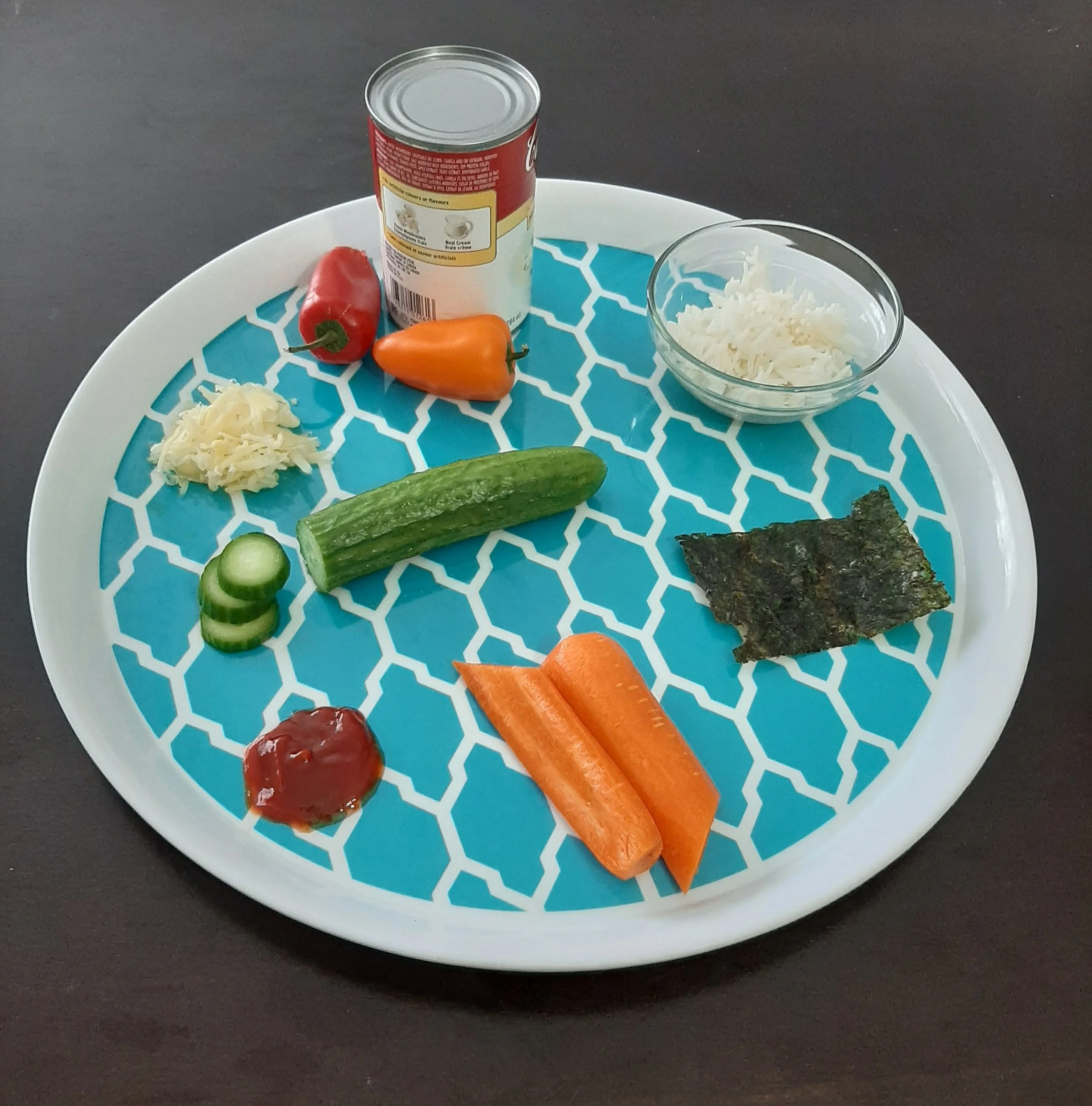 For the eyes you can use rice bowls, carrot slices, cucumber slices, beet slices, even cut out toast