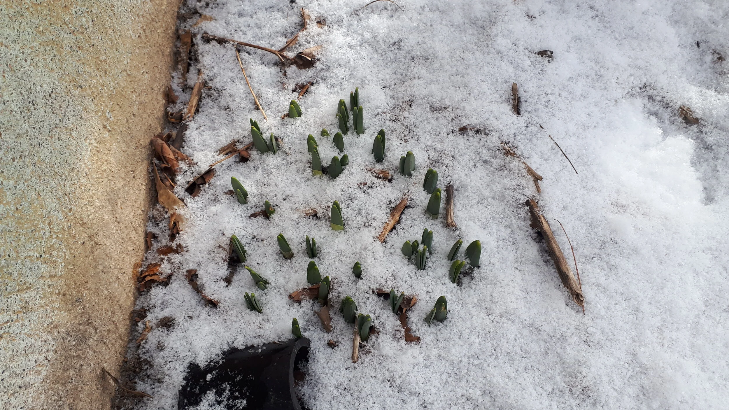 At our WILD CHILDOutdoor Playgroup this week, we found early signs of spring poking up through the snow.